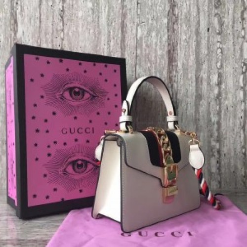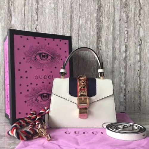 Tags: Gucci White Leather Sylvie Mini Bag, Monogram Empreinte