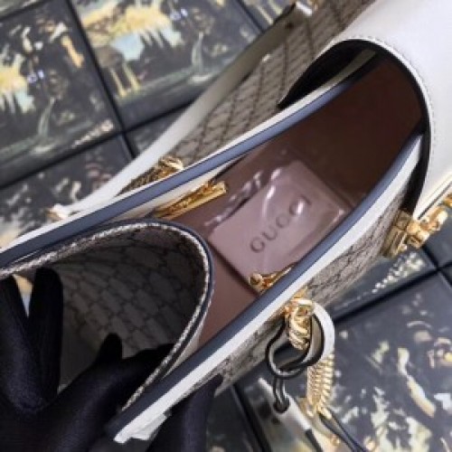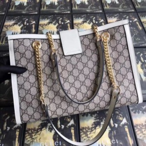 A medium shoulder bag with a key lock closure and chain straps. Made in GG Supreme canvas crafted from a coated microfiber fabric with the GG motif with detailing in an incredibly soft leather with a natural shine and supple appearance.
