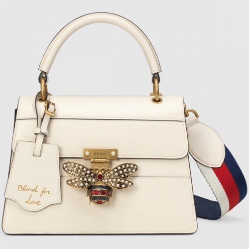 The Queen Margaret line mixes iconic Gucci details with newly established codes. The bee-a historica..