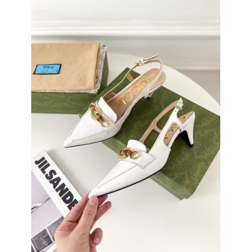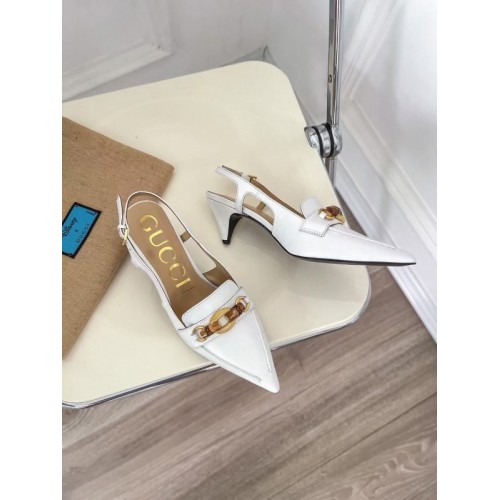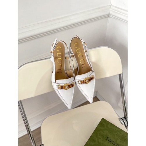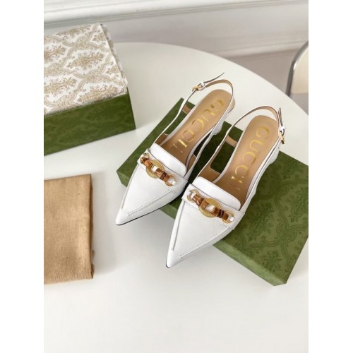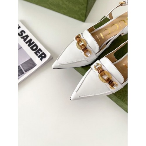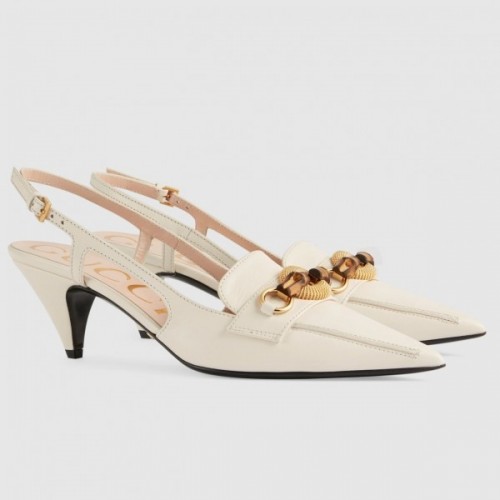 Gucci White Slingback Pumps with Bamboo Horsebit