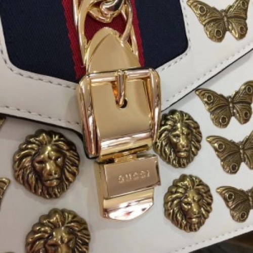 Gucci 470270 Sylvie Animal Studs Leather Mini Bag White