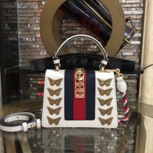 Gucci Sylvie Metal Animal Insects Studs Leather Top Handle Mini Bag 470270 White 2017