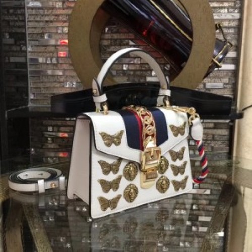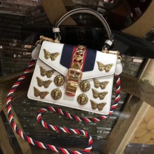 Tags: Gucci White Sylvie Animal Studs Leather Mini Bag, 277, Sylvie bag