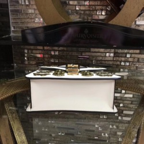 - Gold-toned hardware
