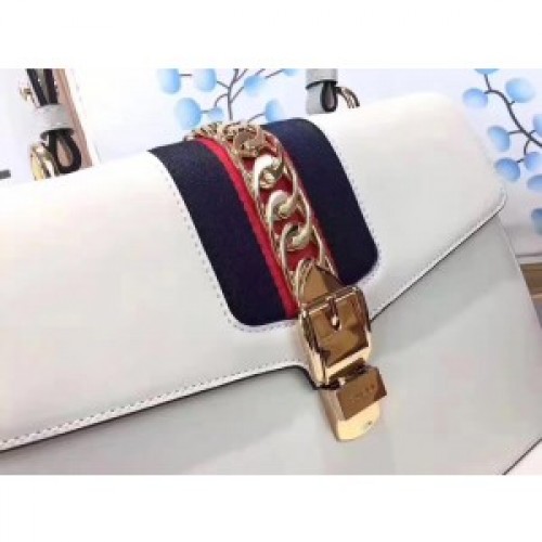 A chic accessory for every day, Gucci's Sylvie bag has been crafted in sumptuous smooth leather and boasts a ladylike structured design. With a flap silhouette, it has been finished with the brand's signature webbings and decorated with a gold chain and buckle. Perfect for slipping in the crook of your arm for both work and play.