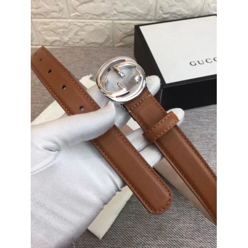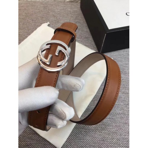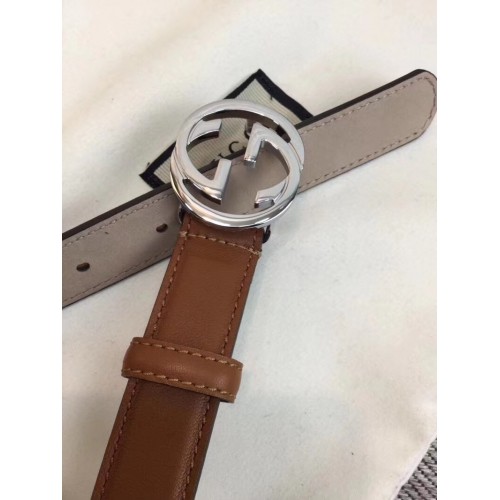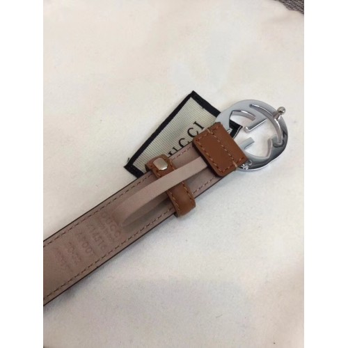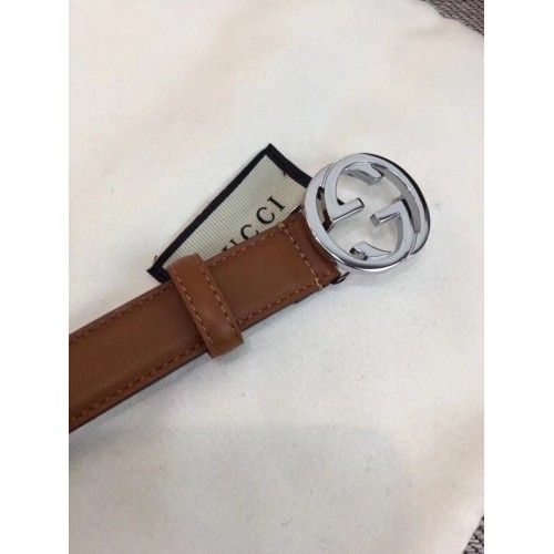 Gucci Width 2.5cm Calfkin Round Buckle Belt Brown/Silver 2018