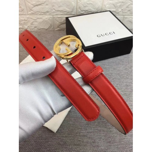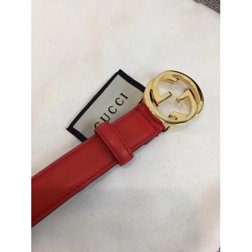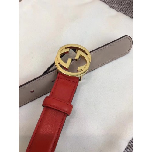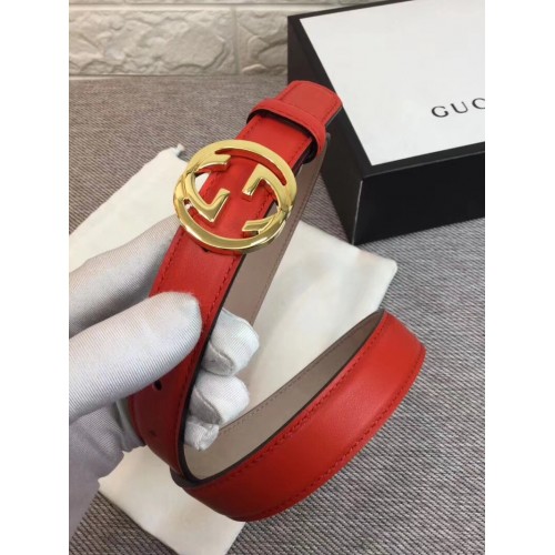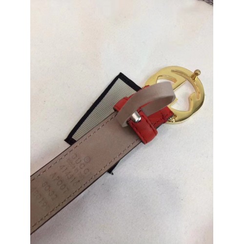 Gucci Width 2.5cm Calfkin Round Buckle Belt Red/Gold 2018