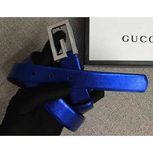 Gucci Width 2.5cm Leather Belt Blue with G Buckle 2018