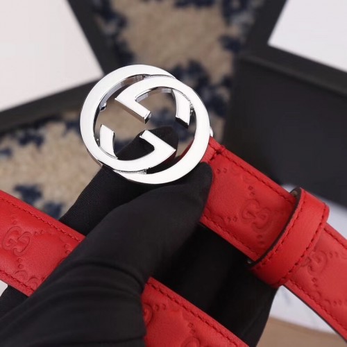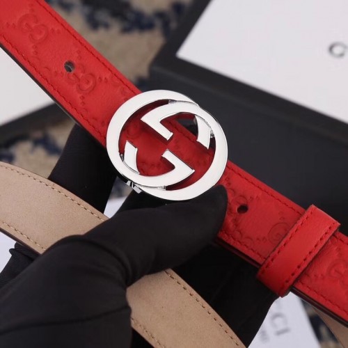 Gucci Width 2.5cm Signature Leather Belt Red with Interlocking G Buckle
