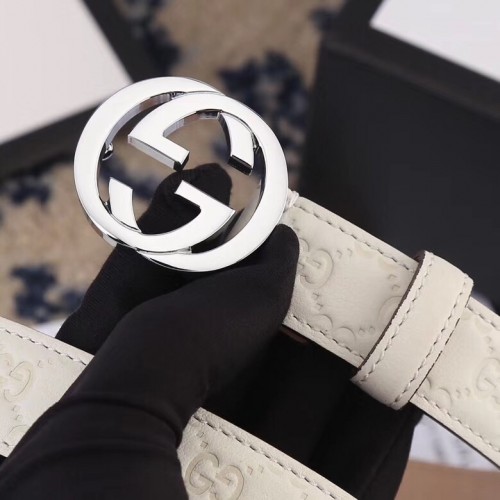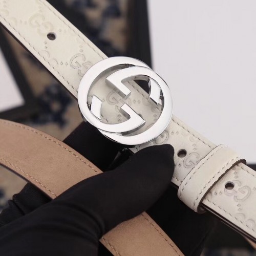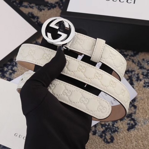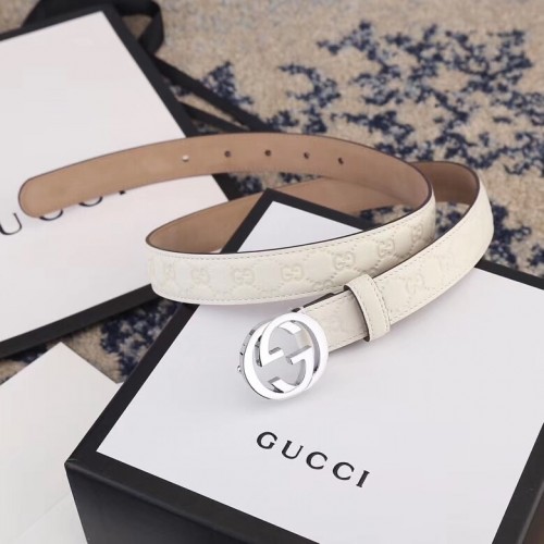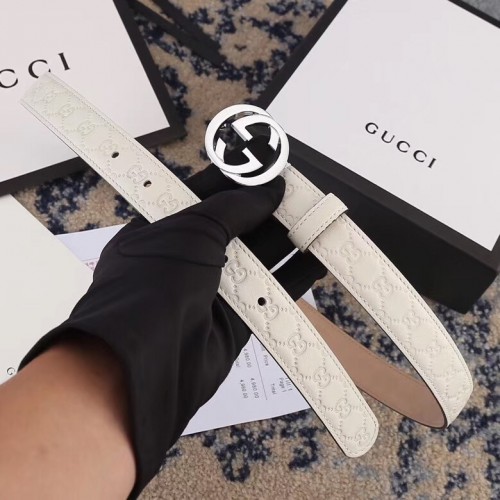 Gucci Width 2.5cm Signature Leather Belt White with Interlocking G Buckle