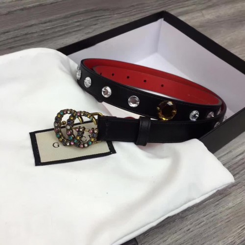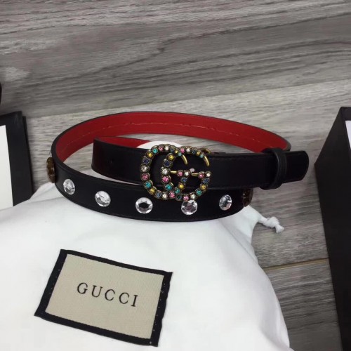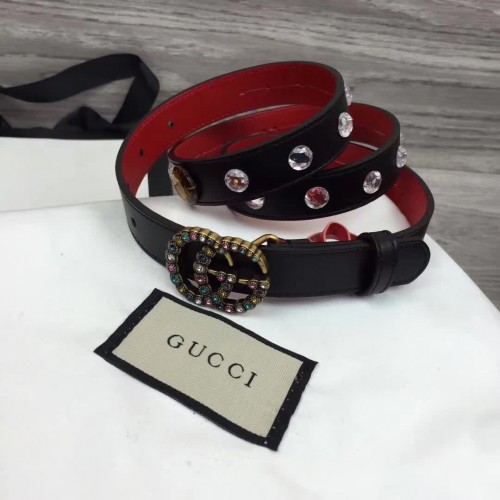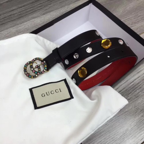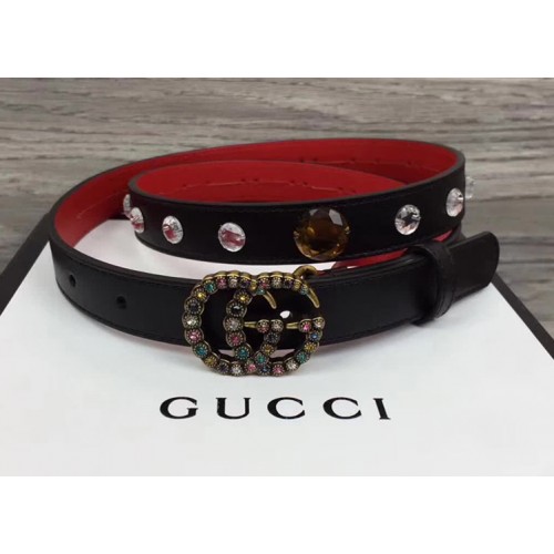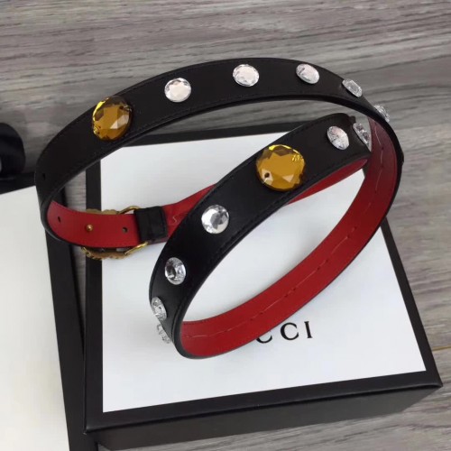 Gucci Width 20mm Crystal Belt With Double G Buckle 466749 Black 2017