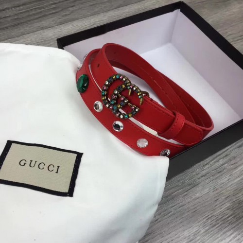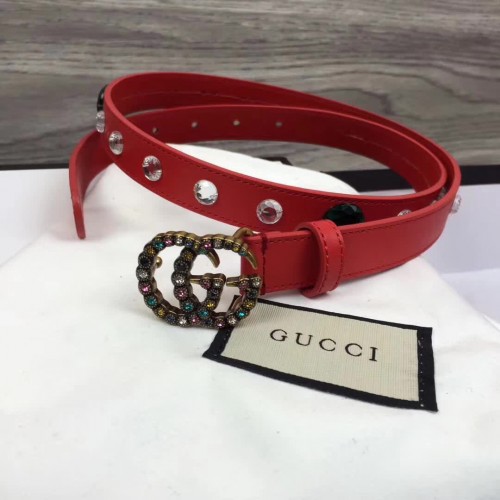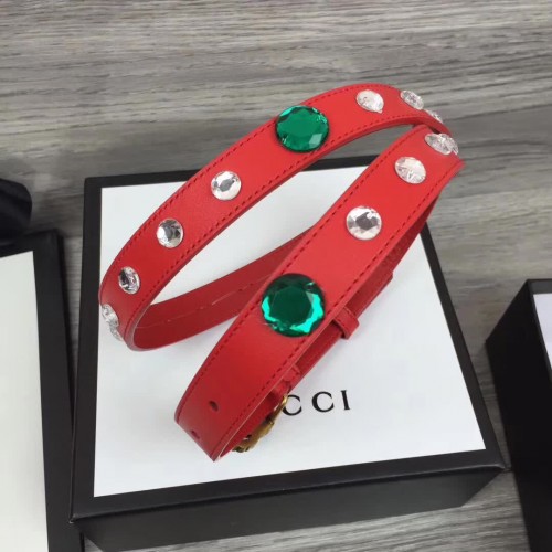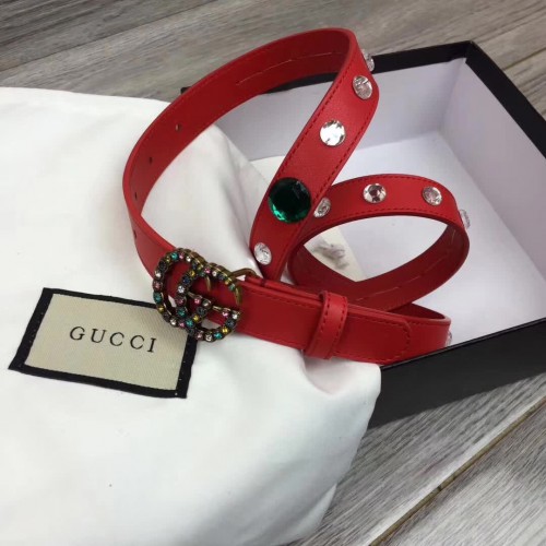 Gucci Width 20mm Crystal Belt With Double G Buckle 466749 Red 2017