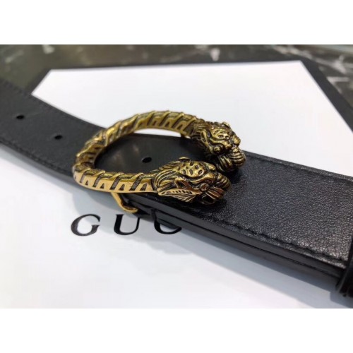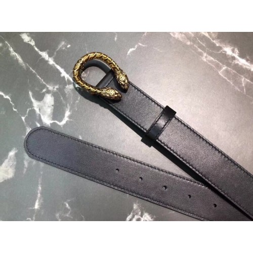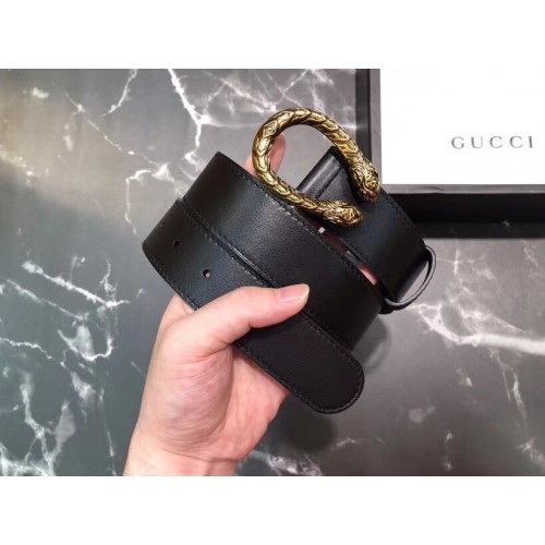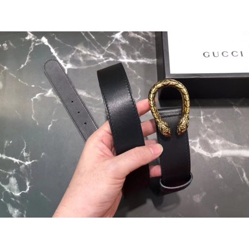 Gucci Width 3/3.5cm Leather Belt Black/Gold with Dionysus Buckle