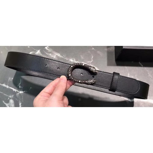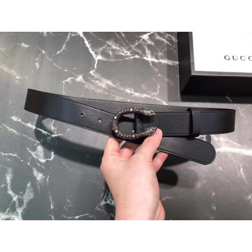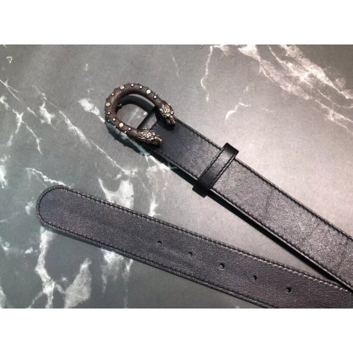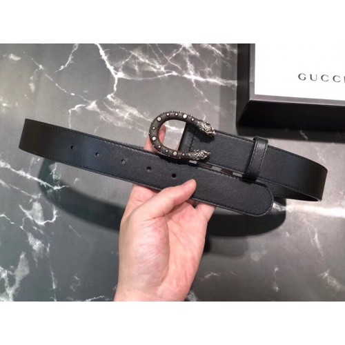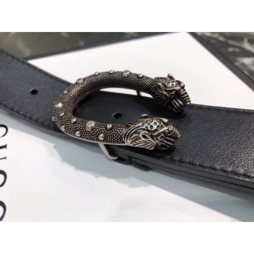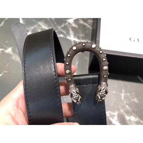 Gucci Width 3/3.5cm Leather Belt Black/Silver with Dionysus Stud Buckle