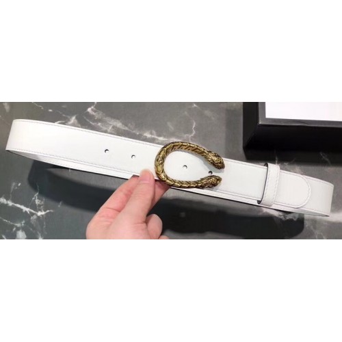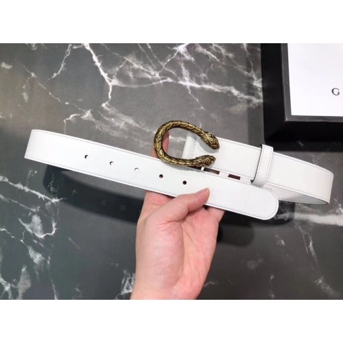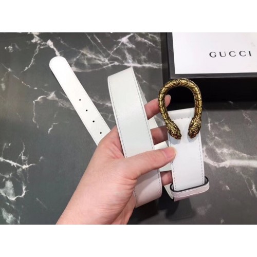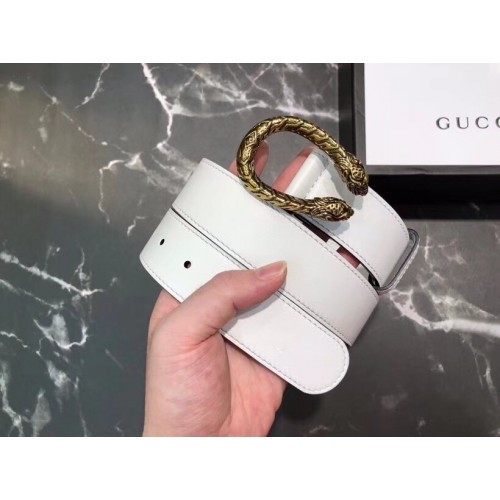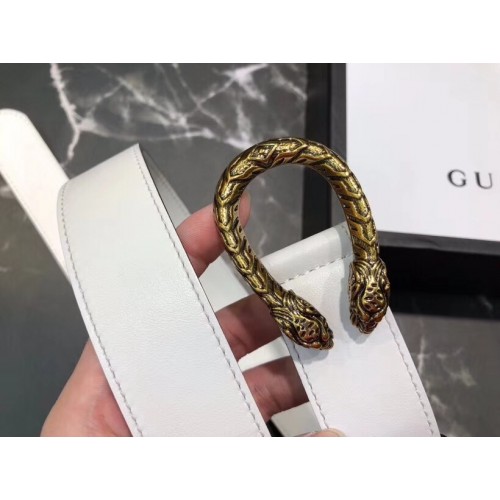 Gucci Width 3/3.5cm Leather Belt White with Dionysus Buckle