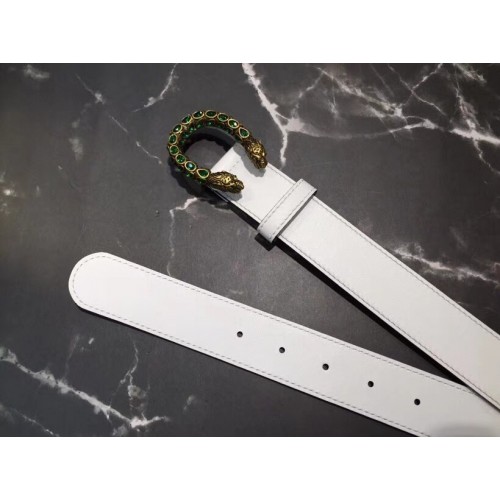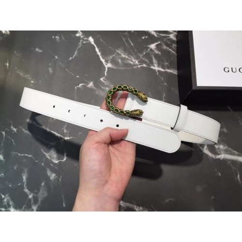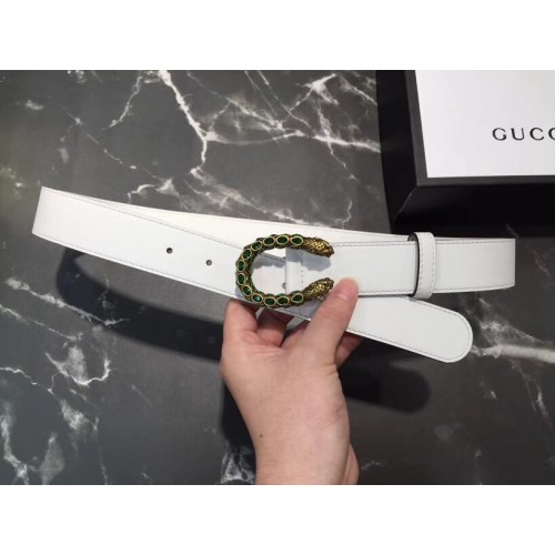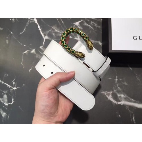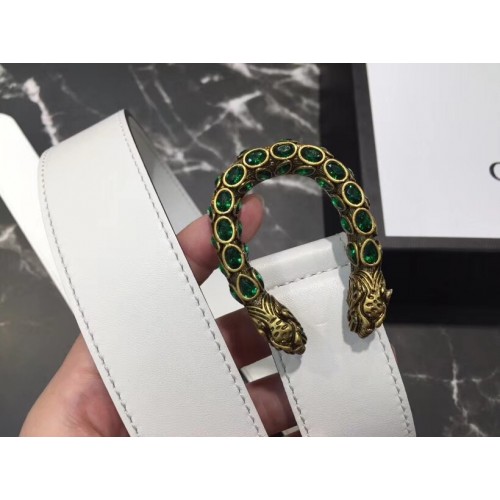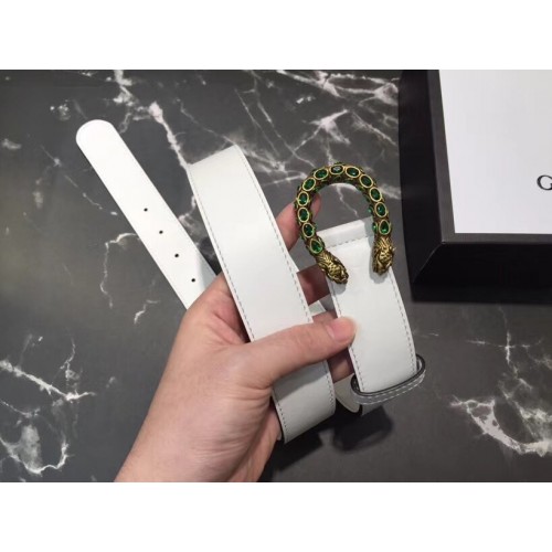Gucci Width 3/3.5cm Leather Belt White with Green Crystal Dionysus Buckle