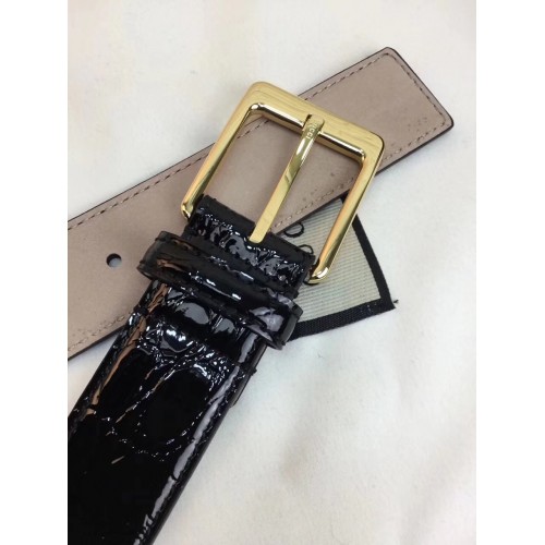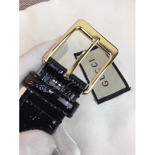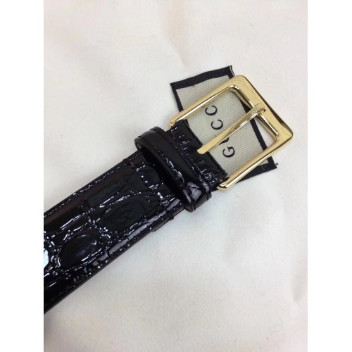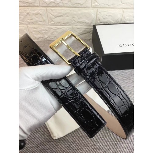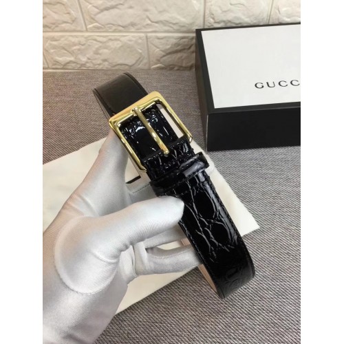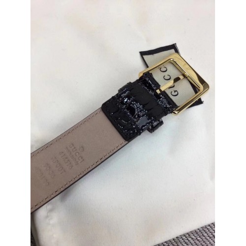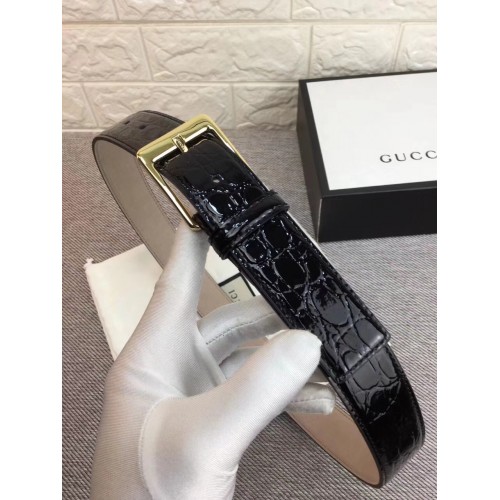 Gucci Width 3.5cm Crocodile Textured Square Buckle Belt Black/Gold 2018