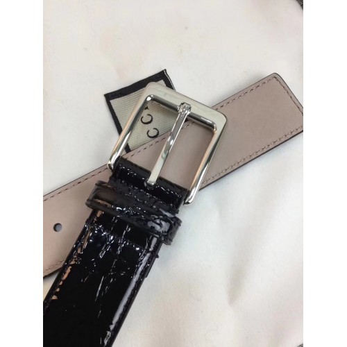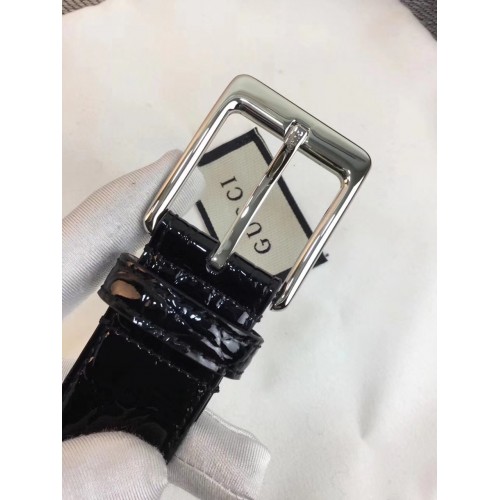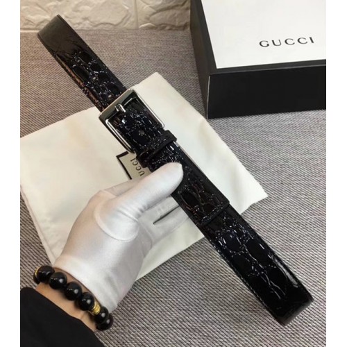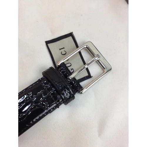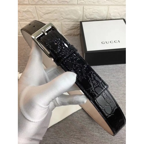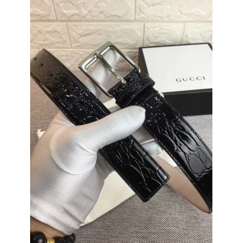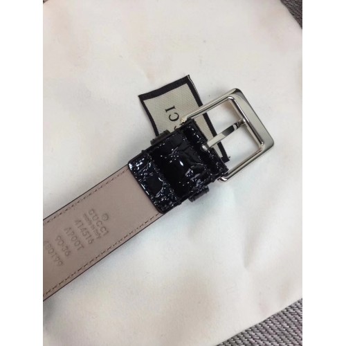Gucci Width 3.5cm Crocodile Textured Square Buckle Black/Silver 2018