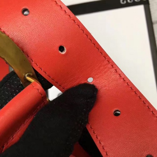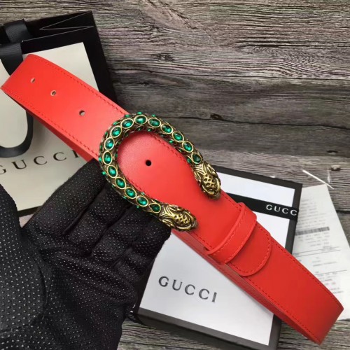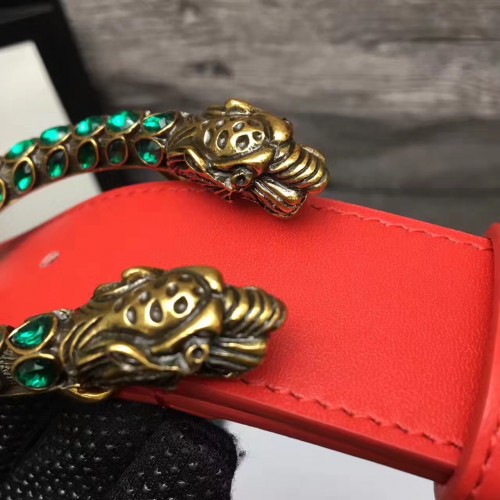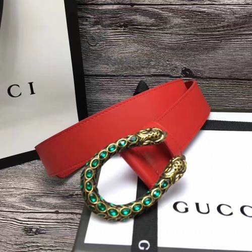 Gucci Width 3.5cm Crystal Dionysus Buckle Leather Belt Red 2017