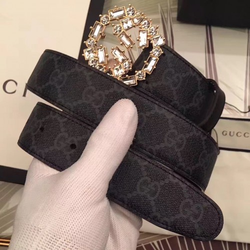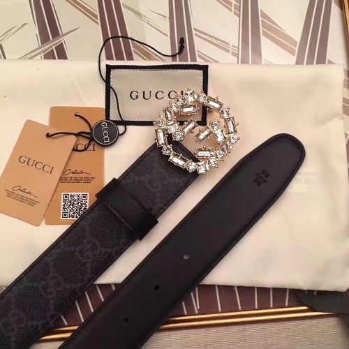 Gucci Width 3.5CM Crystal Double G Buckle Blooms Print Belt 03 2017