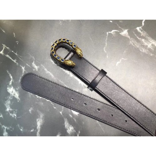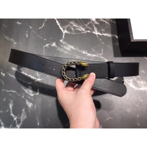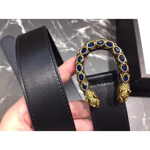 Gucci Width 3.5cm Leather Belt Black with Blue Crystal Dionysus Buckle