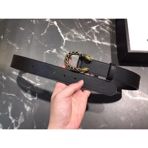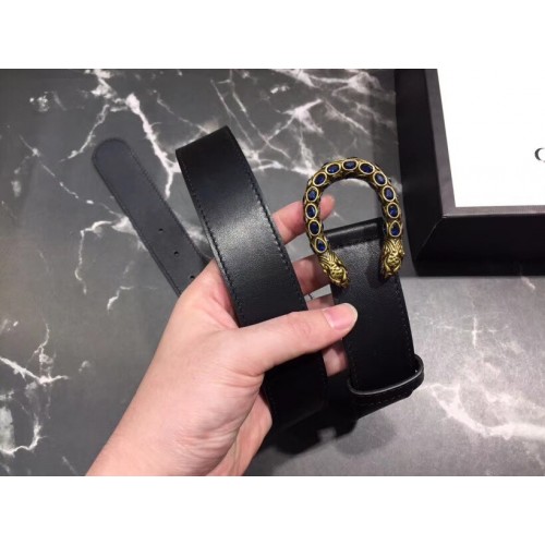 Gucci Width 3.5cm Leather Belt Black with Crystal Dionysus Buckle
