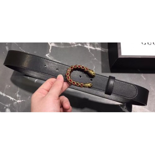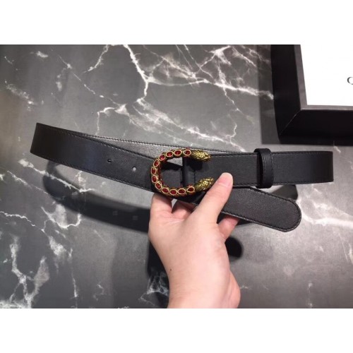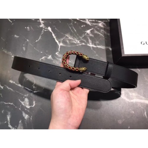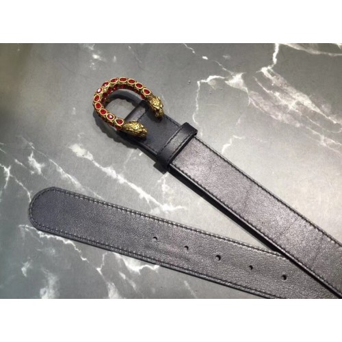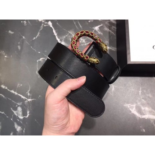 Gucci Width 3.5cm Leather Belt Black with Red Crystal Dionysus Buckle