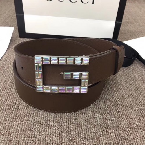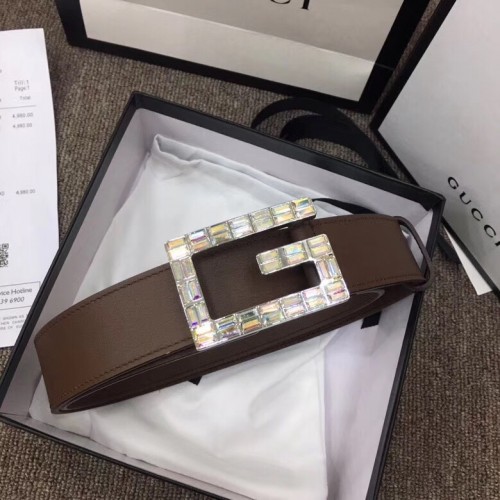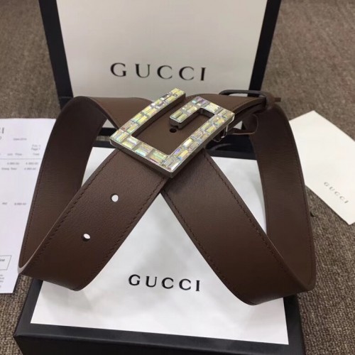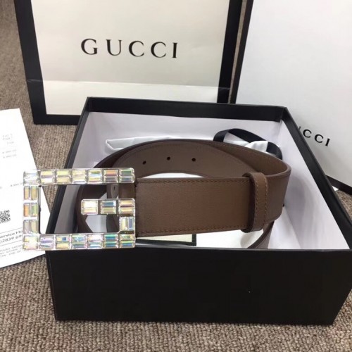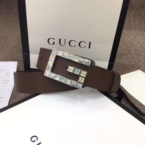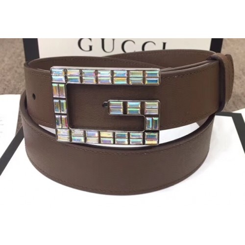 Gucci Width 3.5cm Leather Belt Brown with Crystals Square G Buckle