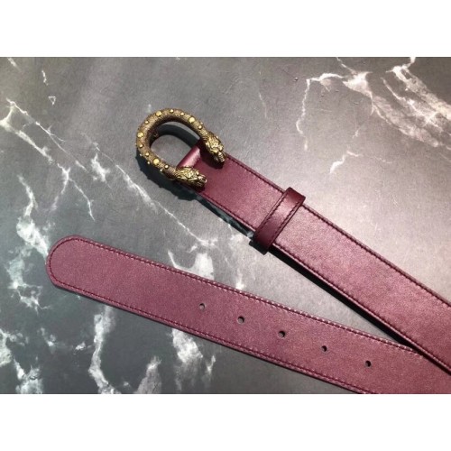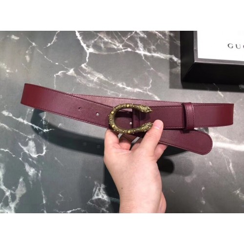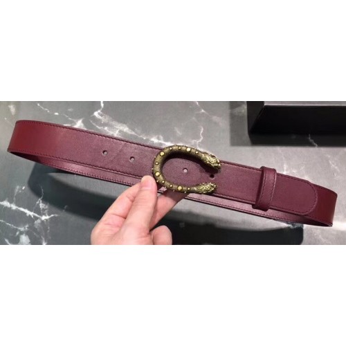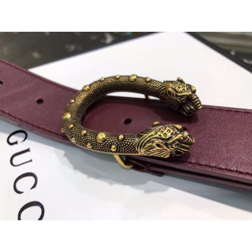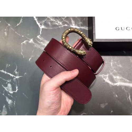 Gucci Width 3.5cm Leather Belt Burgundy with Dionysus Stud Buckle