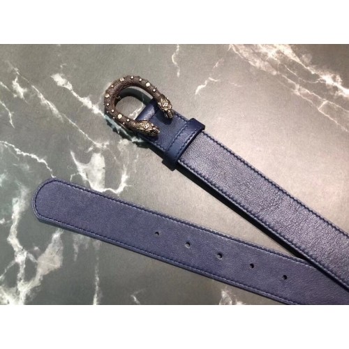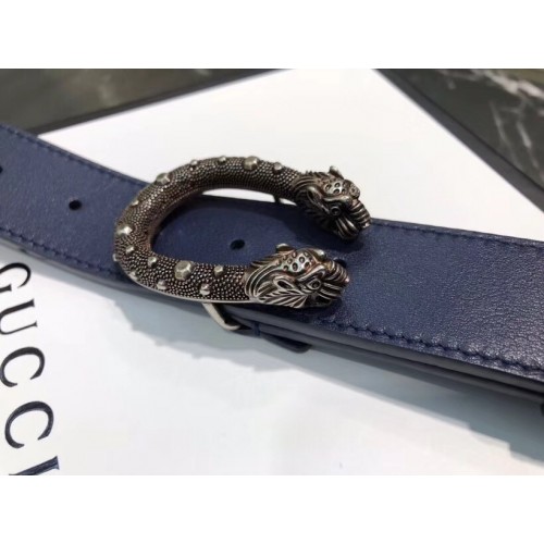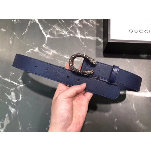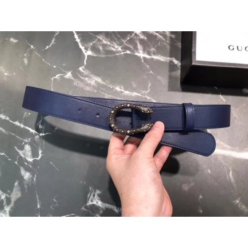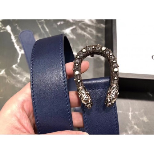 Gucci Width 3.5cm Leather Belt Navy Blue with Dionysus Stud Buckle