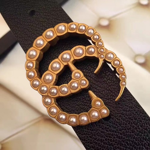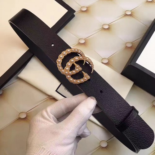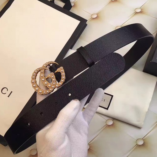Gucci Width 3.5cm Pearl Double G Buckle Leather Belt Black 2017