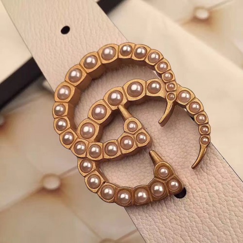 Gucci Width 3.5cm Pearl Double G Buckle Leather Belt White 2017