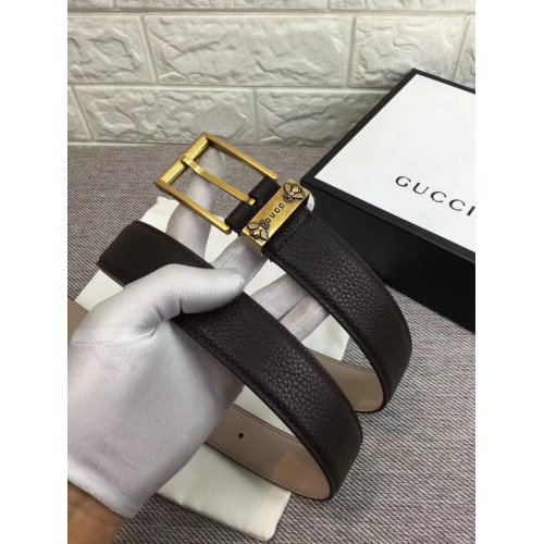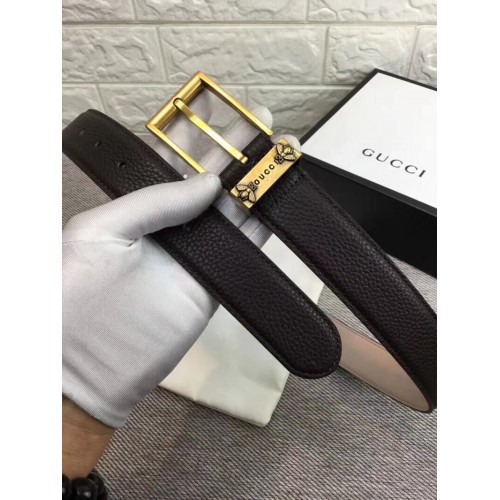 Gucci Width 3.5cm Vintage Buckle Belts With Bee In Grained Calfskin Black/Gold 2018