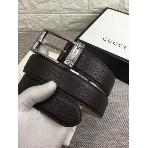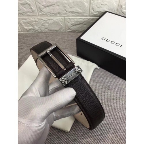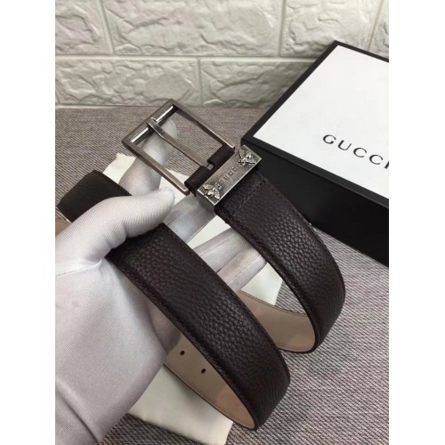Gucci Width 3.5cm Vintage Buckle Belts With Bee In Grained Calfskin Black/Silver 2018