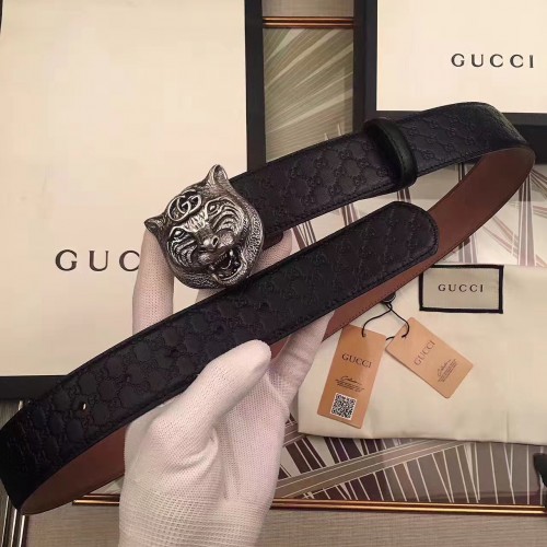 Gucci Width 3.8CM Feline Buckle Empreite Leather Belt 06 2017