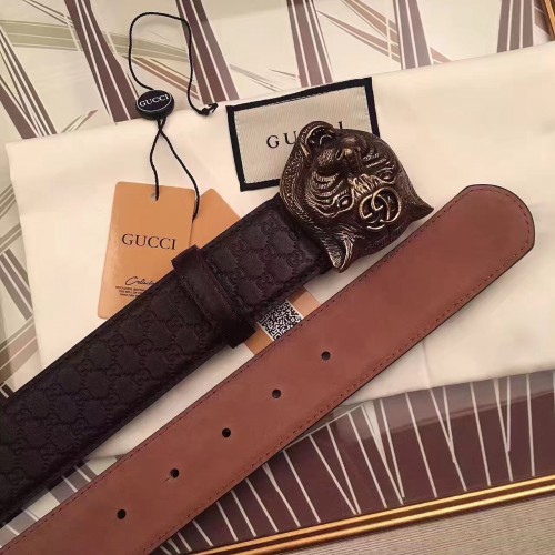 Gucci Width 3.8CM Feline Buckle Empreite Leather Belt 07 2017