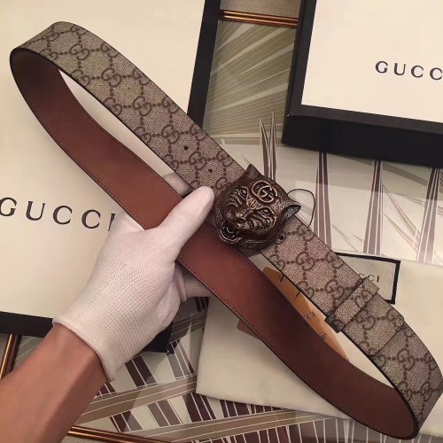 Gucci Width 3.8CM Feline Buckle Empreite Leather Belt 08 2017