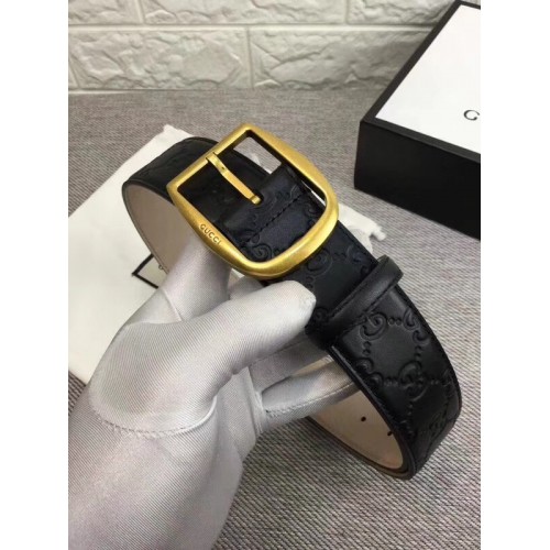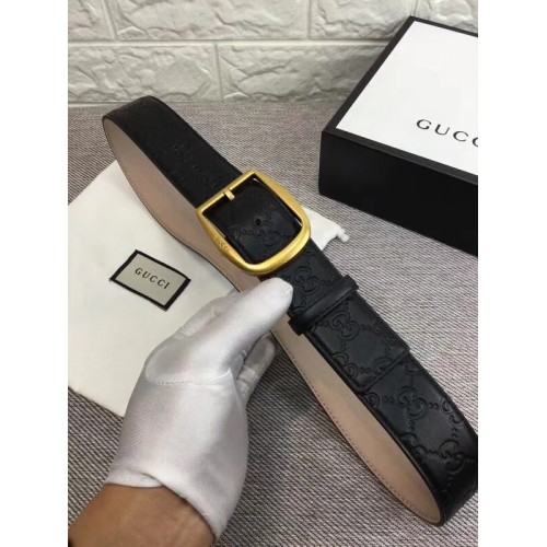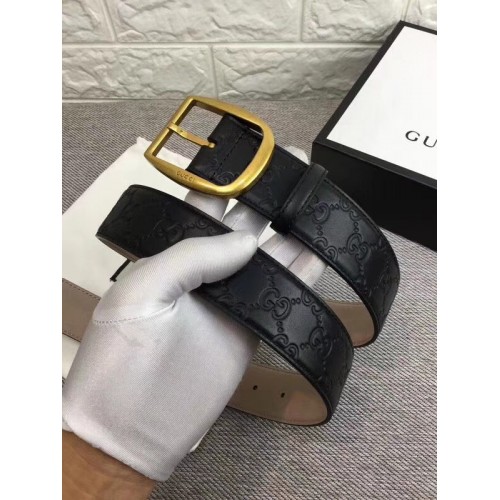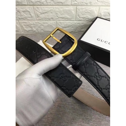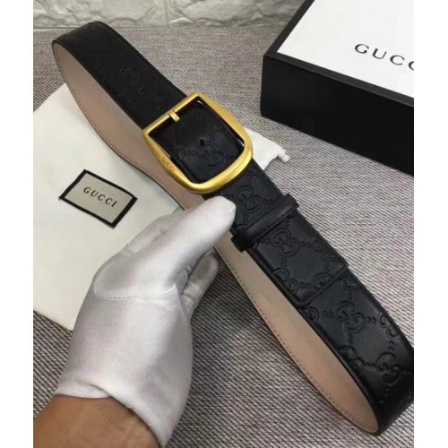 Gucci Width 3.8cm GG Textured Belts Black/Gold 2018