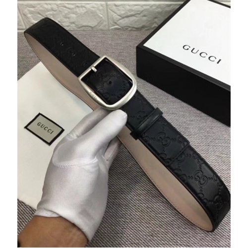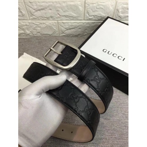 Gucci Width 3.8cm GG Textured Belts Black/Silver 2018
