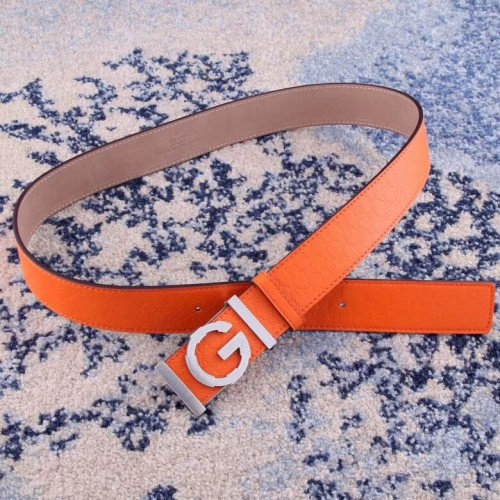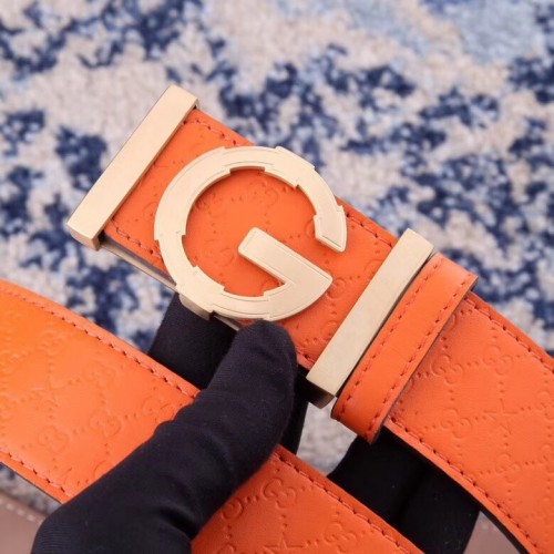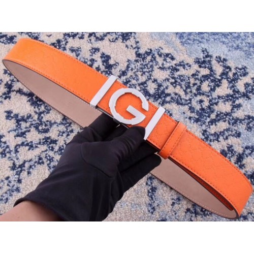 Gucci Width 3.8cm Leather Signature GG Belt with Single G Buckle Orange 2019