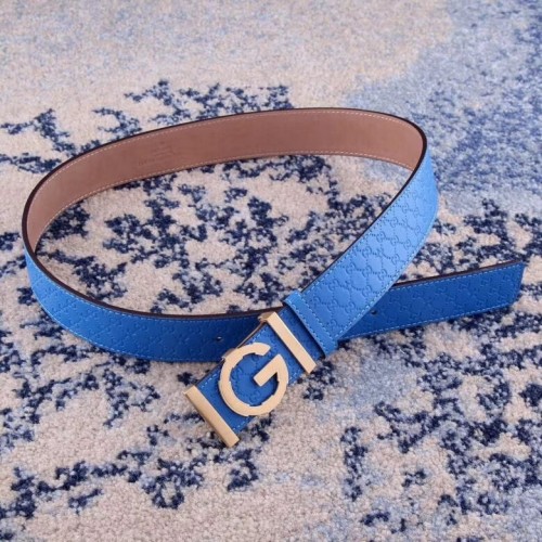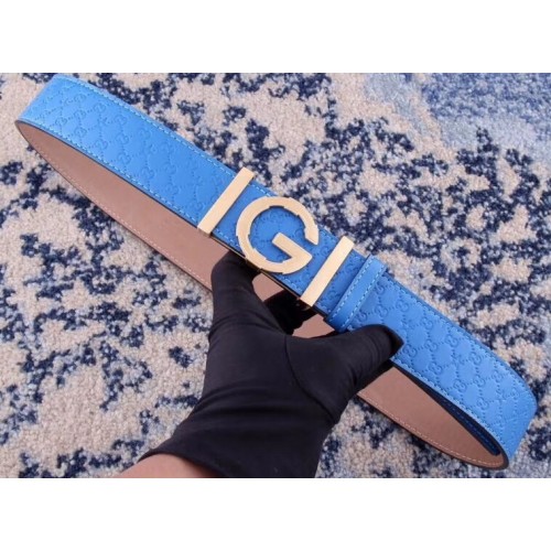 Gucci Width 3.8cm Leather Signature GG Belt with Single G Buckle Sky Blue 2019