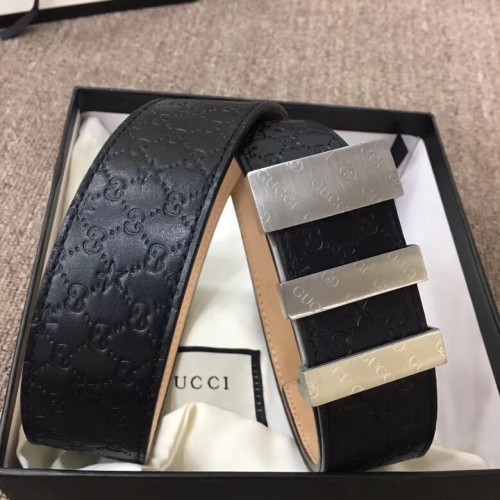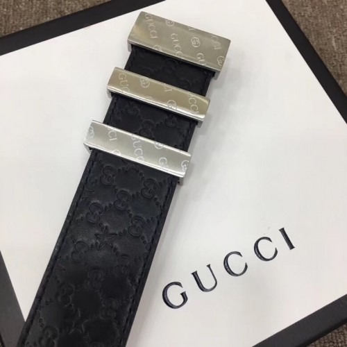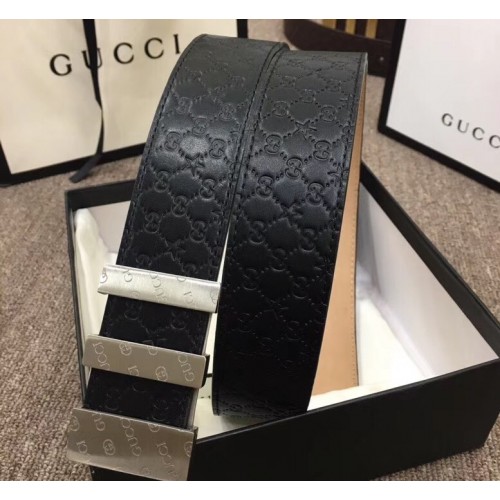 Gucci Width 3.8cm Signature Leather Belt Black with Logo Buckle