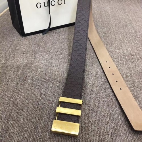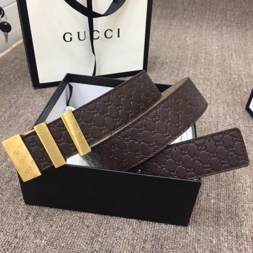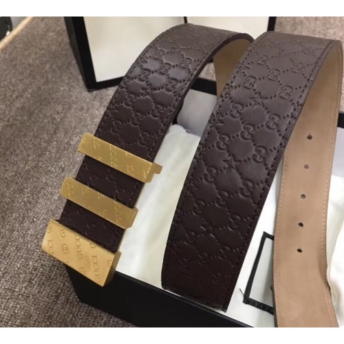 Gucci Width 3.8cm Signature Leather Belt Coffee with Logo Buckle