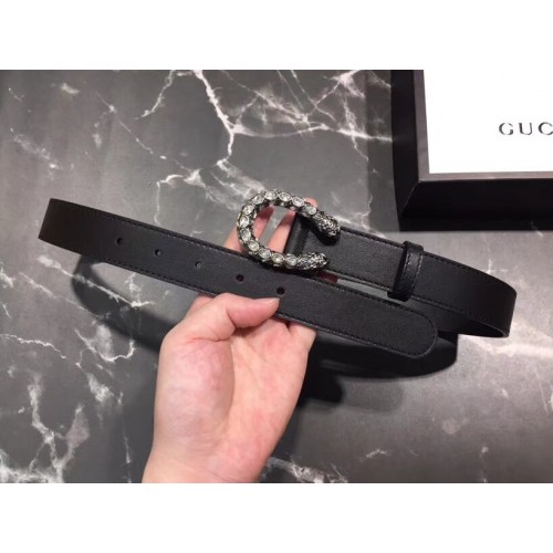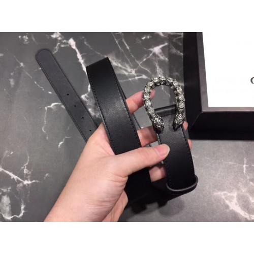 Gucci Width 3cm Leather Belt Black with Crystal Dionysus Buckle