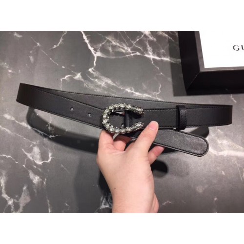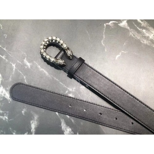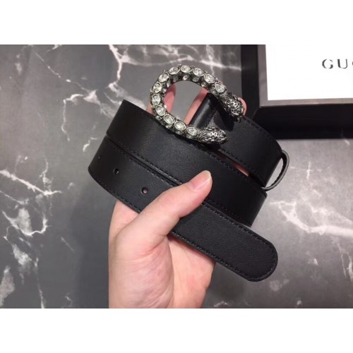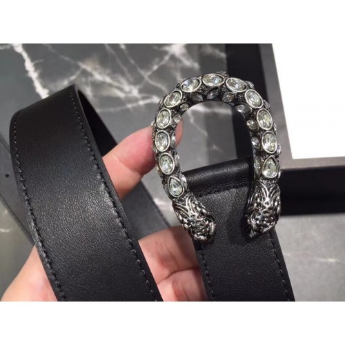 Gucci Width 3cm Leather Belt Black with White Crystal Dionysus Buckle