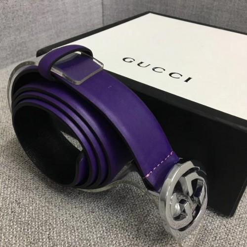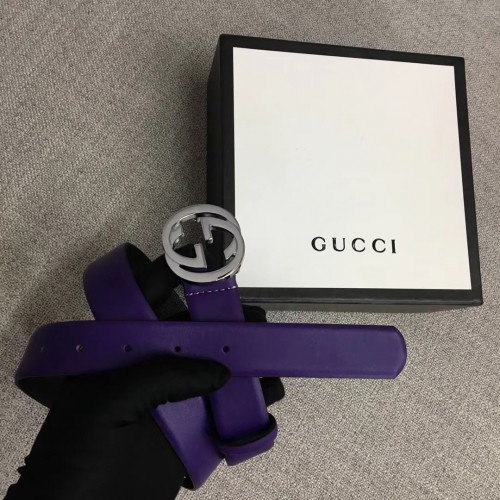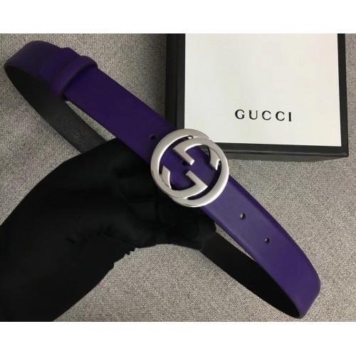 Gucci Width 3cm Leather Belt Purple With Interlocking G Buckle