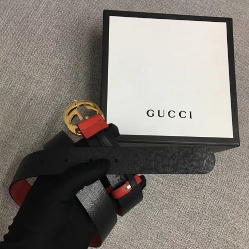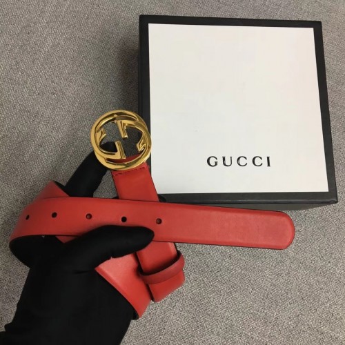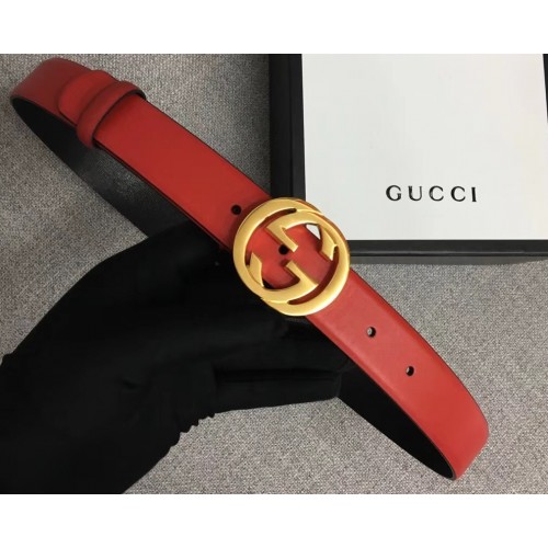 Gucci Width 3cm Leather Belt Red With Interlocking G Buckle