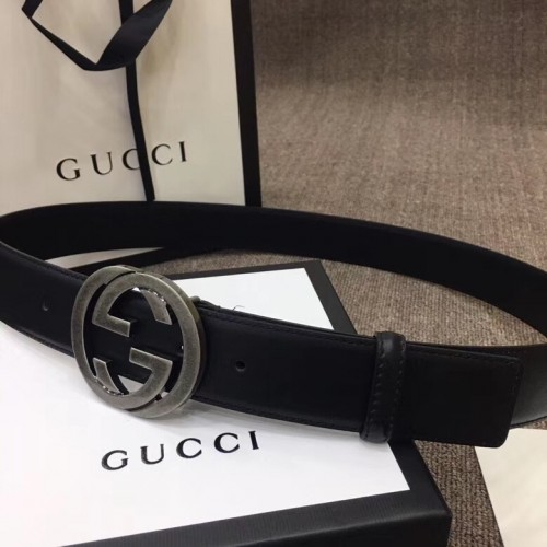 Gucci Width 4cm Leather Belt Black with Interlocking G Buckle