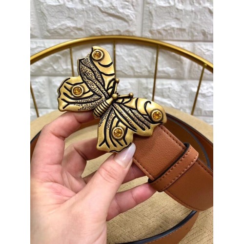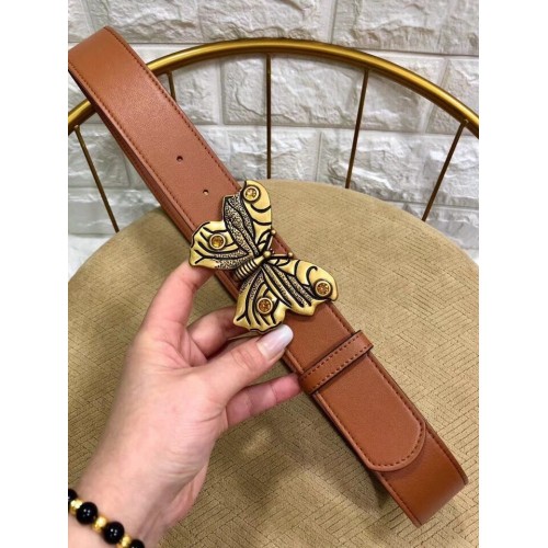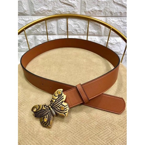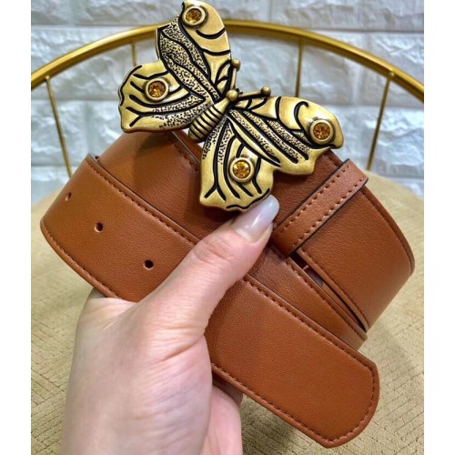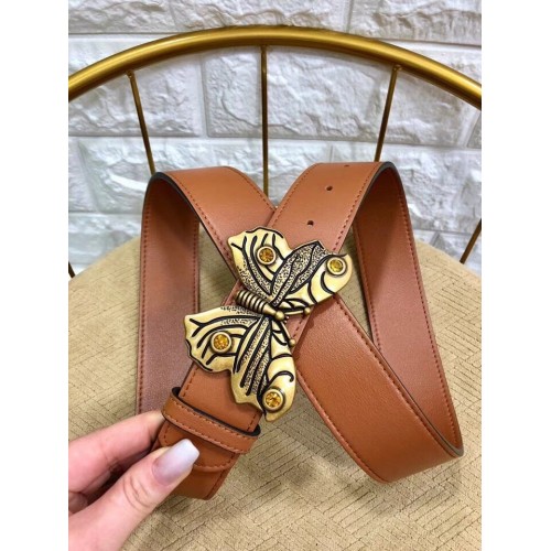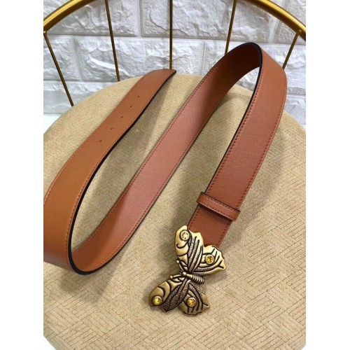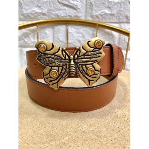 Gucci Width 4cm Leather Belt Brown with Butterfly Buckle