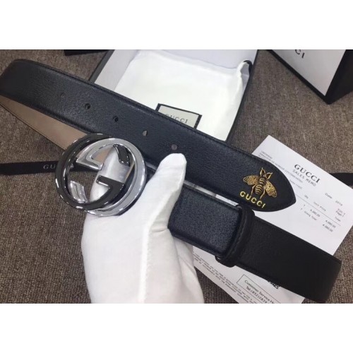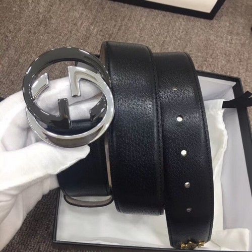 Gucci Width 4cm Leather Belt with Black/Silver Interlocking G Buckle